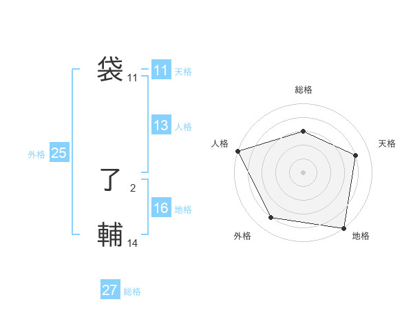 袋 了輔さんの総格は27画の3点!