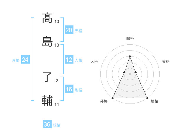 髙島 了輔さんを姓名の画数から五運を鑑定