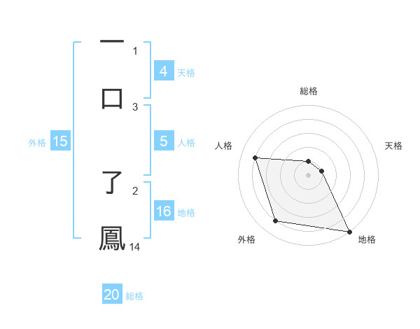 一口 了鳳さんの総格は20画の1点!
