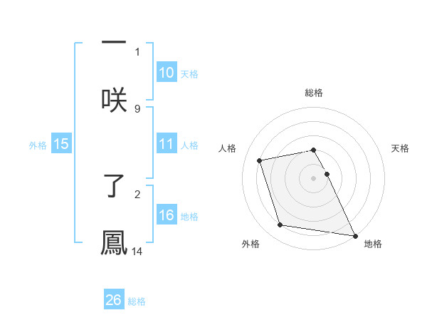 一咲 了鳳さんを姓名の画数から五運を鑑定