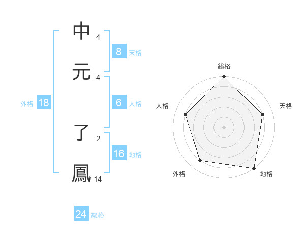 中元 了鳳さんを姓名の画数から五運を鑑定