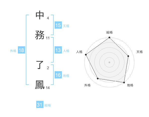 中務 了鳳さんを姓名の画数から五運を鑑定