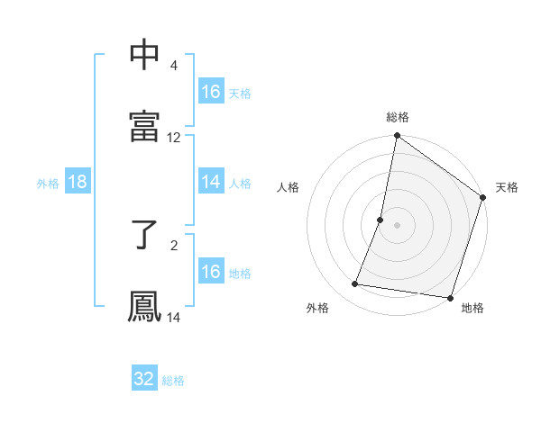 中富 了鳳さんの天格は16画の5点!