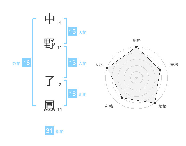 中野 了鳳さんを姓名の画数から五運を鑑定