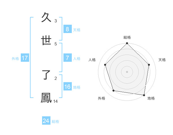 久世 了鳳さんを姓名の画数から五運を鑑定