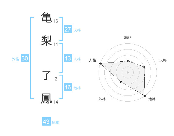 亀梨 了鳳さんの総格は43画の2点!