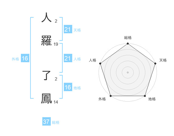 人羅 了鳳さんを姓名の画数から五運を鑑定