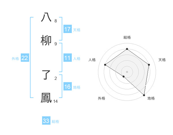 八柳 了鳳さんの総格は33画の4点!