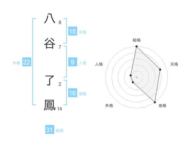 八谷 了鳳さんを姓名の画数から五運を鑑定