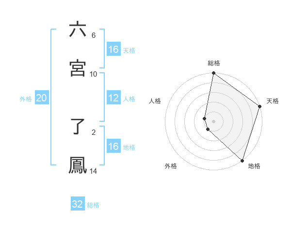 六宮 了鳳さんの地格は16画の5点!