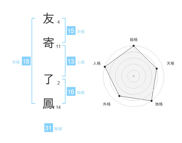 友寄 了鳳さんを姓名の画数から五運を鑑定