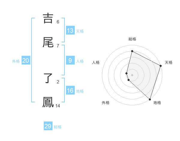 吉尾 了鳳さんを姓名の画数から五運を鑑定