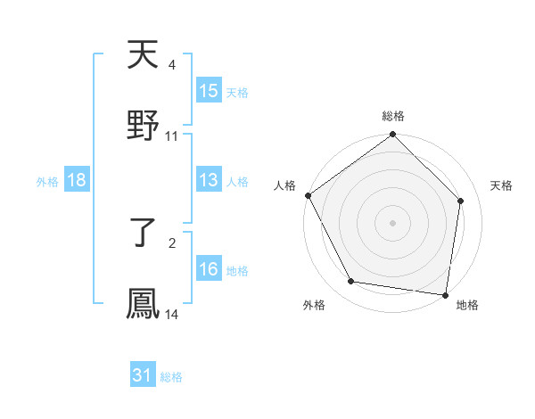天野 了鳳さんを姓名の画数から五運を鑑定