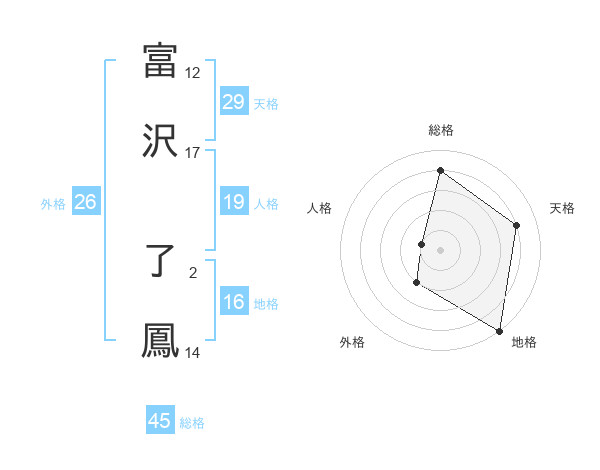 富沢 了鳳さんを姓名の画数から五運を鑑定