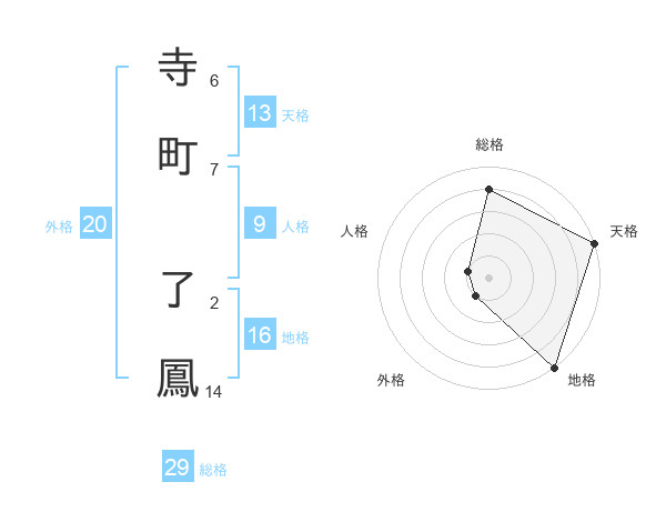 寺町 了鳳さんを姓名の画数から五運を鑑定