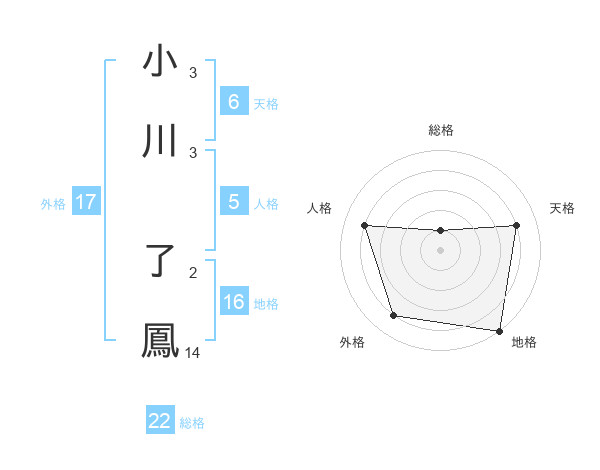 小川 了鳳さんの総格は22画の1点!