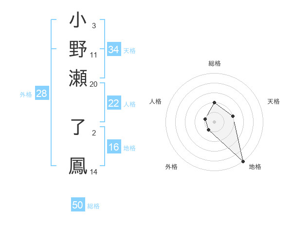 小野瀬 了鳳さんを姓名の画数から五運を鑑定