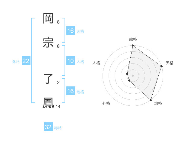 岡宗 了鳳さんを姓名の画数から五運を鑑定