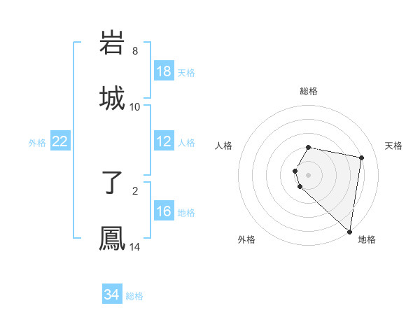 岩城 了鳳さんを姓名の画数から五運を鑑定