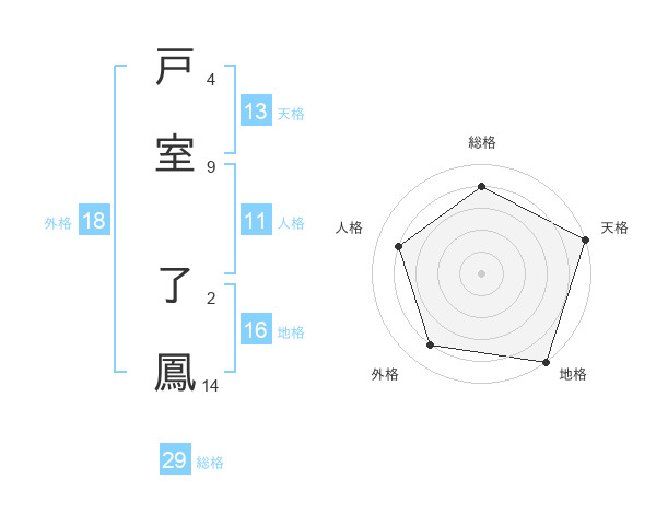 戸室 了鳳さんの総格は29画の4点!