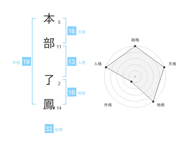 本部 了鳳さんを姓名の画数から五運を鑑定