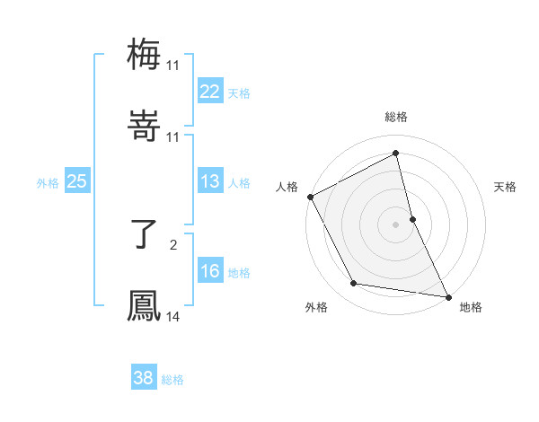 梅嵜 了鳳さんの総格は38画の4点!