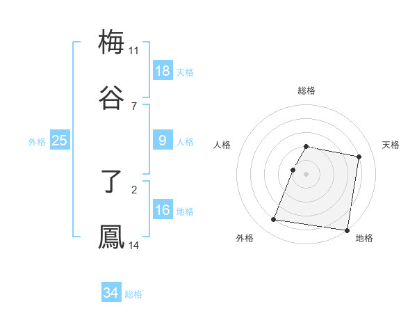 梅谷 了鳳さんを姓名の画数から五運を鑑定