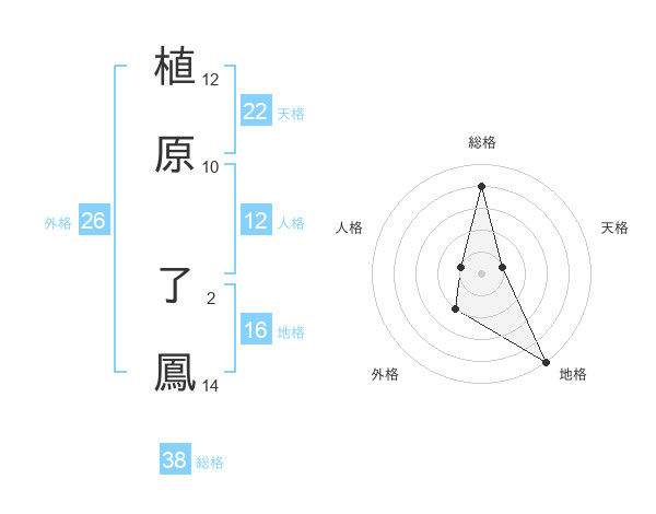 植原 了鳳さんの総格は38画の4点!