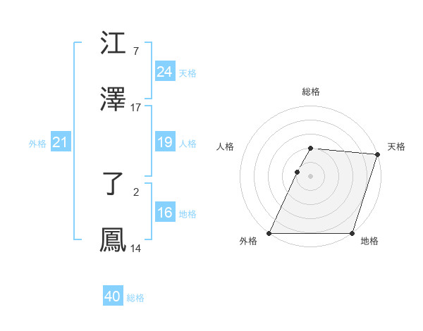 江澤 了鳳さんを姓名の画数から五運を鑑定