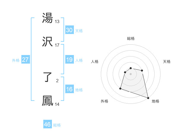 湯沢 了鳳さんの総格は46画の1点!