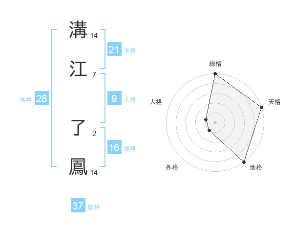 溝江 了鳳さんの総格は37画の5点!