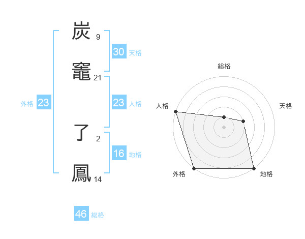 炭竈 了鳳さんを姓名の画数から五運を鑑定