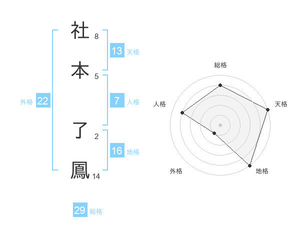 社本 了鳳さんの天格は13画の5点!