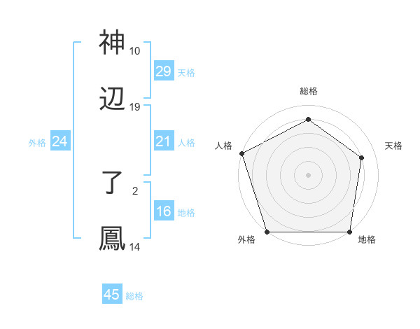 神辺 了鳳さんの総格は45画の4点!