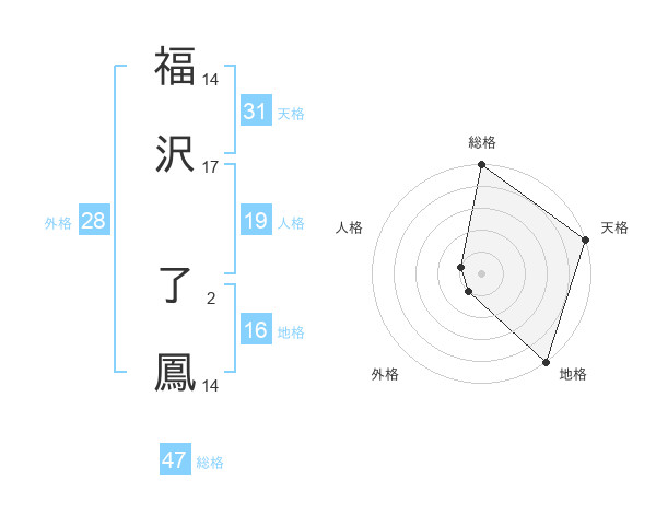 福沢 了鳳さんの総格は47画の5点!
