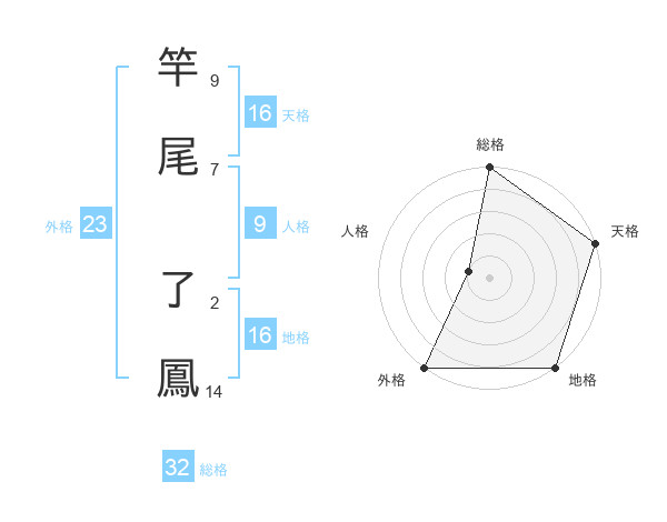 竿尾 了鳳さんを姓名の画数から五運を鑑定