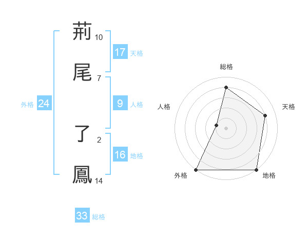 荊尾 了鳳さんの総格は33画の4点!