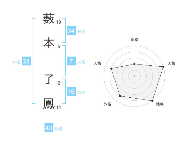 薮本 了鳳さんの天格は24画の5点!