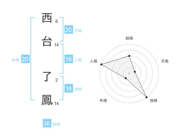 西台 了鳳さんの総格は36画の3点!
