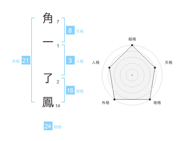 角一 了鳳さんを姓名の画数から五運を鑑定