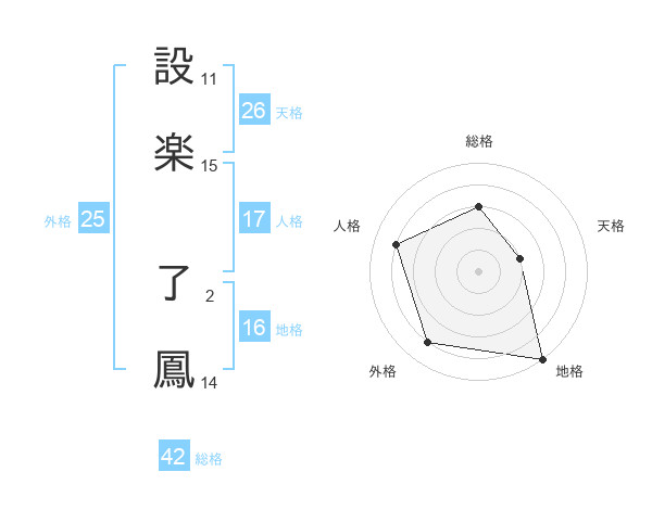 設楽 了鳳さんを姓名の画数から五運を鑑定