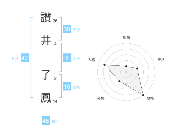 讃井 了鳳さんの総格は46画の1点!