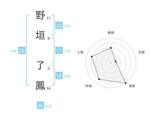 野垣 了鳳さんを姓名の画数から五運を鑑定