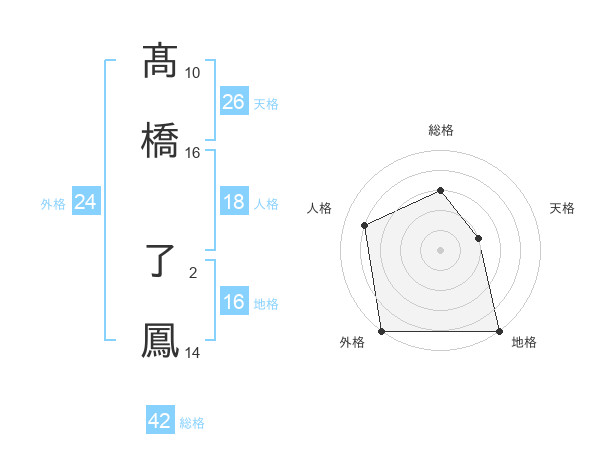 髙橋 了鳳さんの総格は42画の3点!