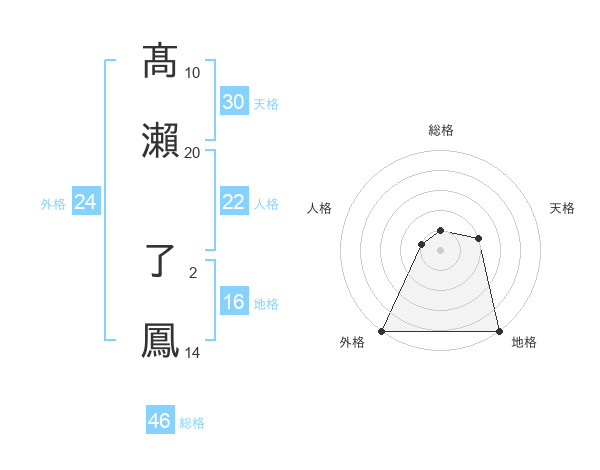 髙瀨 了鳳さんの総格は46画の1点!