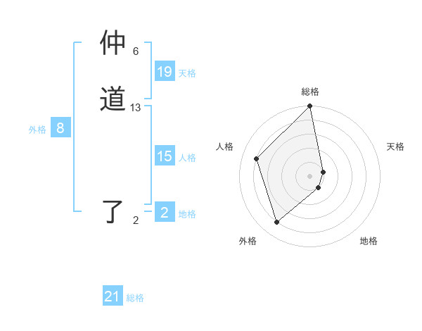 仲道 了さんの総格は21画の5点!