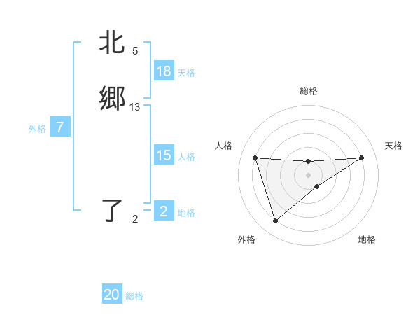 北郷 了さんの総格は20画の1点!