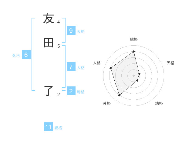 友田 了さんの総格は11画の4点!