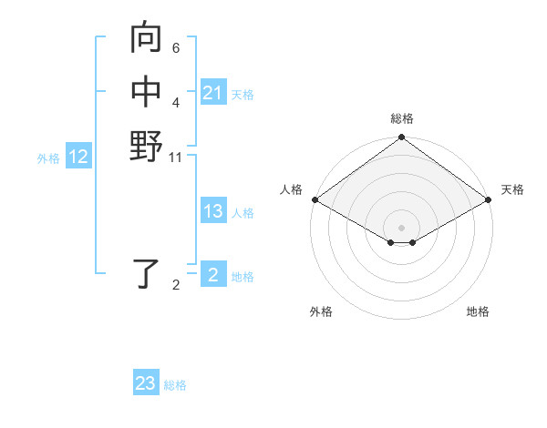 向中野 了さんの総格は23画の5点!