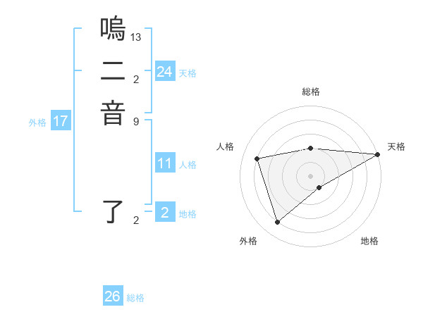 嗚二音 了さんの外格は17画の4点!